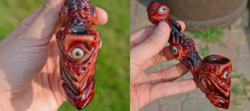 A prime example of the incredible depth of techniques that Deppe has mastered, here he showcases his ability to sculpt and carve the glass into an incredibly intricate and alien-like creature Sherlock, complete with eyes to match.