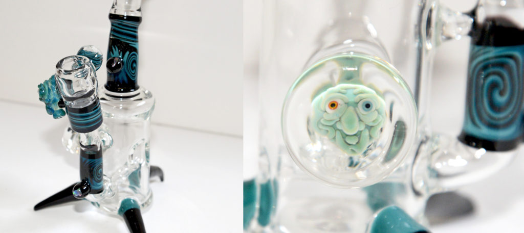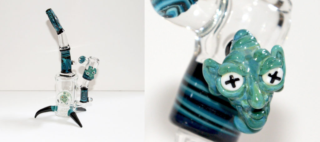 The first collaboration between Mike Shelbo and Jebb Glass on Jebbs Fizzer design. With a sculpted goblin and also one trapped in an implosion! A great function design paired with fun attachments by Mike.