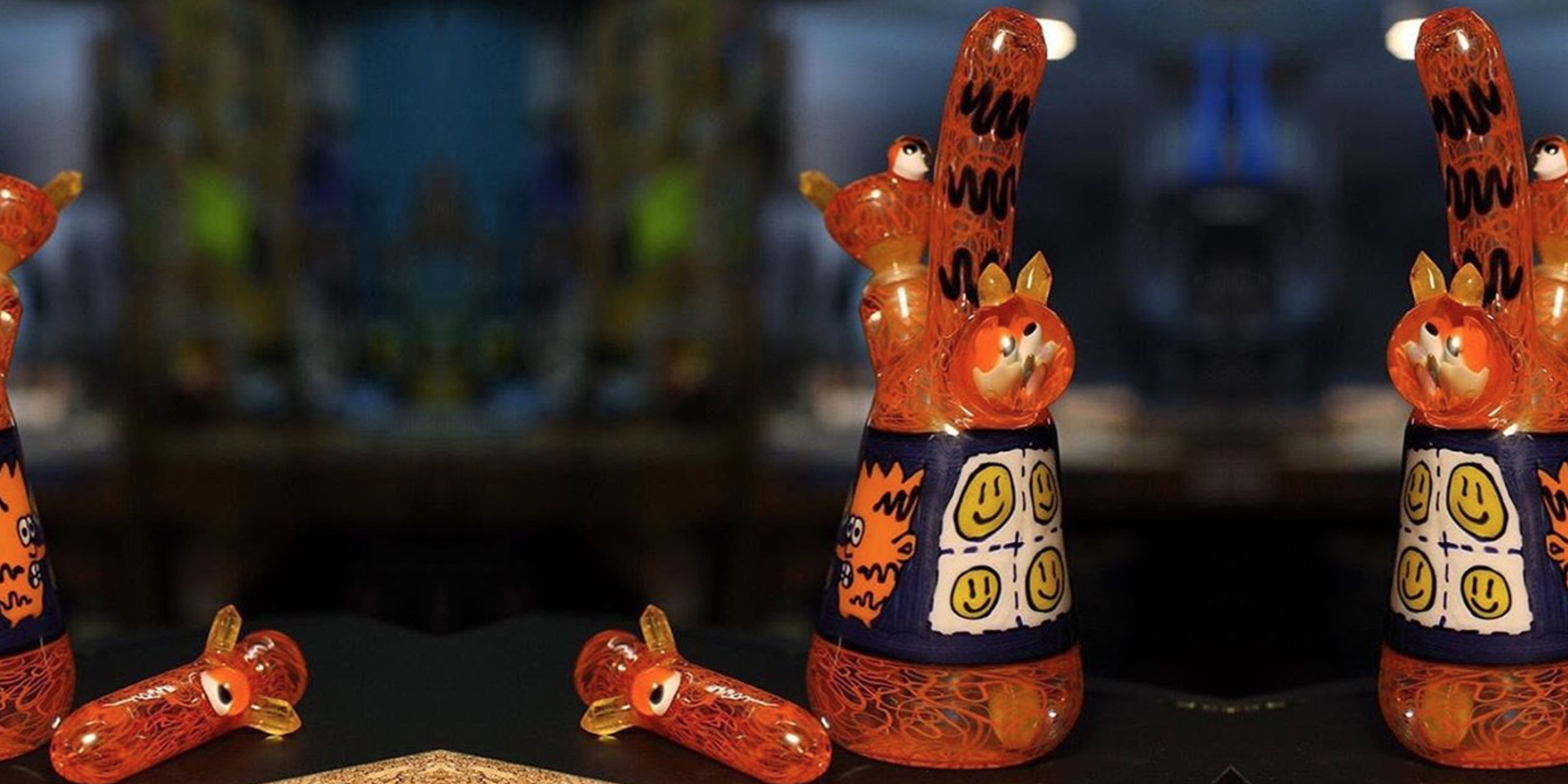 Hands down one of the most unique interpretations of Mike Gongs iconic acid eater concept, this tube features a Garfield eater as well as some INCREDIBLE flips by Storming Norman. The huge flip section by Norm has some very clean images, all shaped into Mikes classic minitube shape with mastery; complete with a chillum. Unfortunately this piece met its demise after I sold it, losing a fight with concrete.