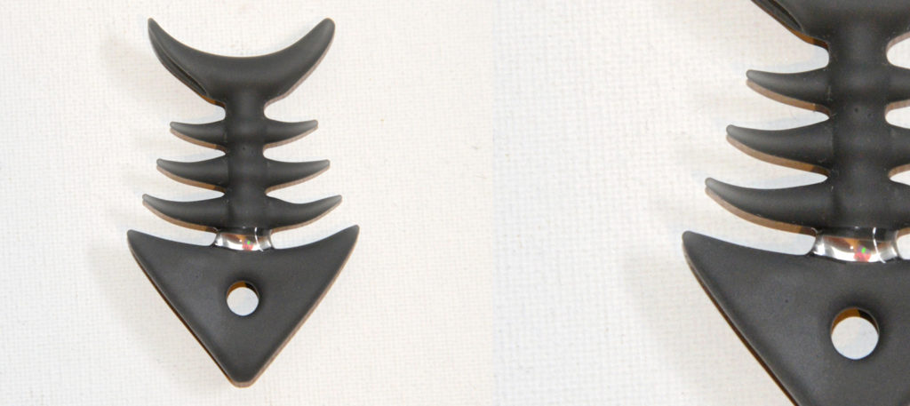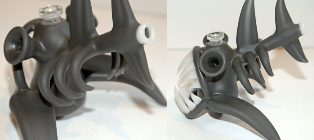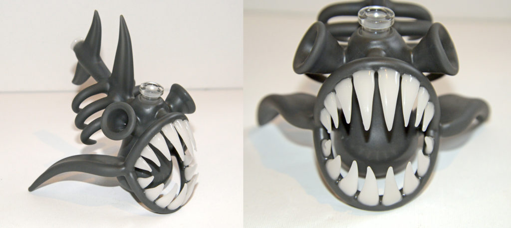 Solo work by Buck created in the likes of a Piranha. In a beautiful Portland Grey color, sandblasted. The set features a removable downstem with a matching mini guppy pendant.