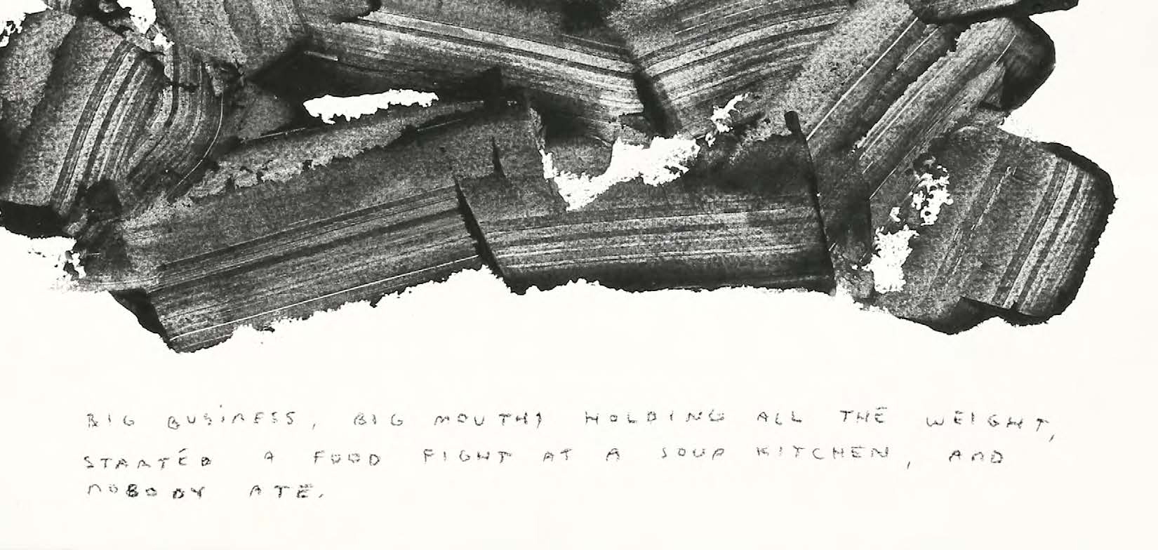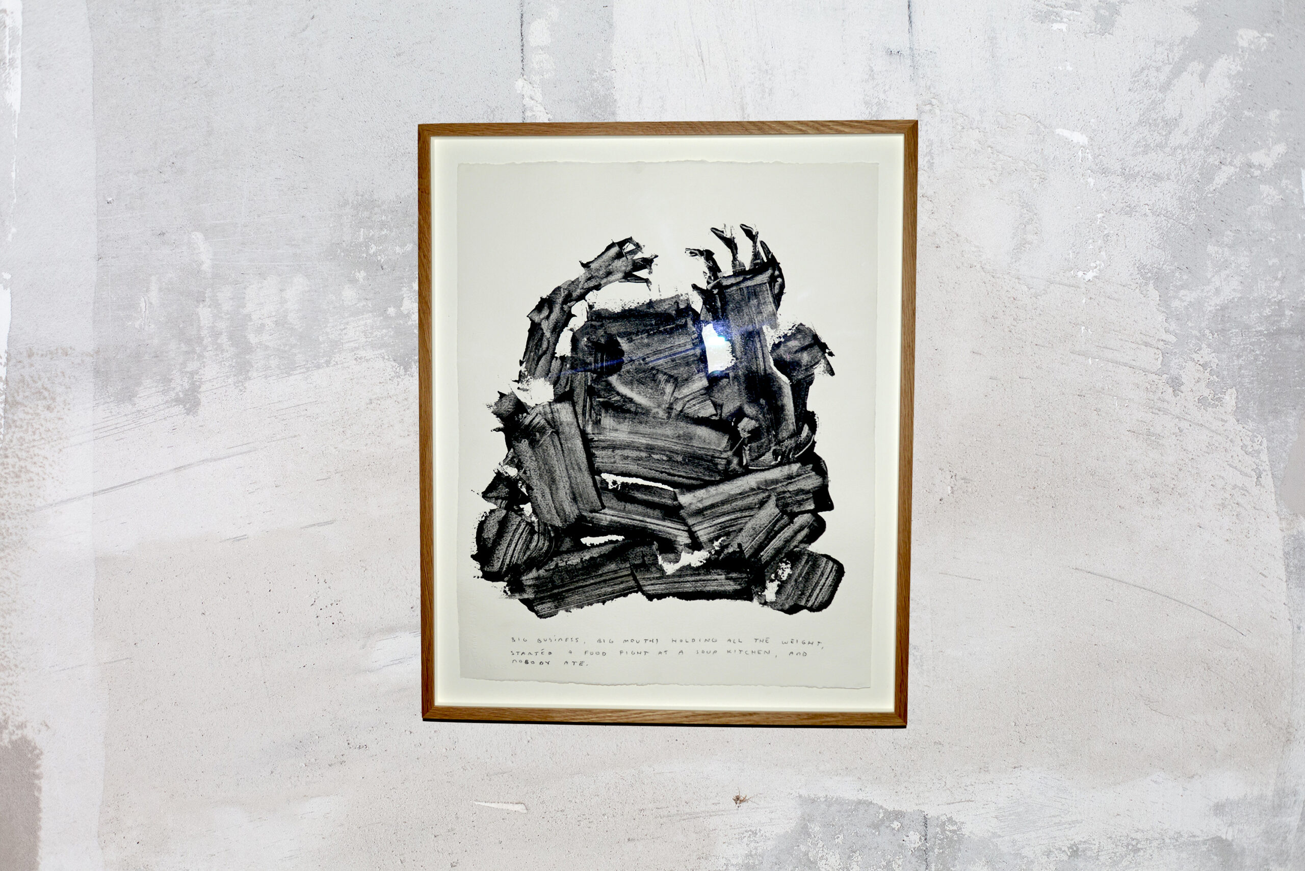 From Bryan Espiritu’s 2023 show “Passage,” this charcoal paint on paper work is a brilliant example of Bryan marrying his poetry with his brush strokes. The image is so dynamic, it has incredible movement; and shows different images to different people. The poem so powerful in its message, really delving into the deep issues of our capitalistic society.